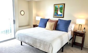 The condo has a flatscreen smart TV and cable in the living room and smart TV with cable in the bedroom, WiFi, Air conditioned throughout, coin operated washer and dryer on the floor, a communal pool, parking for 1 vehicle, and the building has 24/7 security. Contactless check in.