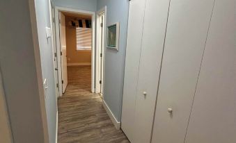 The Guest room has a queen and a twin bed that can accommodate up to three guests comfortably. It also has a ceiling fan. The second bathroom is adjacent to the bedroom.
