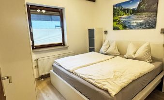 Child friendly holiday village "Am Hohen Bogen", 5 m a.s.l.. In the district of Kummersdorf, outside the resort, 3 km from the centre of Arrach, on a slope, traffic calmed area, 300 m from the edge of the forest, 100 m from the lake, 9 km from the skiing area. For shared use: volleyball, children's playground (slide, swing, sandbox). In the complex: table tennis (extra). Central heating system. Parking at the house. Shop 3 km, grocery 3 km, supermarket 3 km, restaurant 3 km, bakery 3 km, bus stop "Großmühle Abzw. Hohenwarth" 650 m, railway station "Hohenwarth" 1.5 km, grass beach "Seepark Arrach" 5 km, outdoor swimming pool 10 km, thermal baths 10 km, bathing lake "Seepark Arrach" 5 km. Golf course (9 hole) 6 km, tennis 6 km, riding stable 800 m, chair lift 9 km, skisport facilities 9 km, slopes 9 km, ski rental 11 km, ski school 9 km, cross country ski track 11 km. Nearby attractions: Bayerwald-Tierpark Lohberg 15 km, Spielbank Bad Kötzting, Fun-Park Neukirchen, Tiergarten Straubing, Pullman-City. Well-known ski regions can easily be reached: Eck 6 km, Am Hohen Bogen 9 km, Arber 29 km. Hiking paths: Arberregion. Please note: car recommended. Groups of teenagers on request only. Boating, fishing 500 m. The holiday village consists of an apartment house and two-storey holiday houses with shared lawns and play areas. The distance from the individual houses to the natural swimming lake is 50 – 400 m. 2-room apartment 38 m2, on the ground floor. Cosy furnishings: living/dining room 18 m2 with satellite TV (flat screen). Exit to the terrace. 1 room 12 m2 with 1 double bed (180 cm, length 200 cm). Kitchenette (2 hot plates, kettle, electric coffee machine). Shower/WC. Gas heating. Small terrace 8 m2 partly roofed. Terrace furniture, barbecue (portable). Beautiful view of the mountains. Facilities: Internet (WiFi, free). Please note: non-smokers only. Maximum 1 pet/ dog allowed. Smoke alarm. Lake 150 m.
