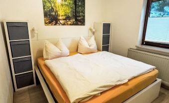 Child friendly holiday village "Am Hohen Bogen", 5 m a.s.l.. In the district of Kummersdorf, outside the resort, 3 km from the centre of Arrach, on a slope, traffic calmed area, 300 m from the edge of the forest, 100 m from the lake, 9 km from the skiing area. For shared use: volleyball, children's playground (slide, swing, sandbox). In the complex: table tennis (extra). Central heating system. Parking at the house. Shop 3 km, grocery 3 km, supermarket 3 km, restaurant 3 km, bakery 3 km, bus stop "Großmühle Abzw. Hohenwarth" 650 m, railway station "Hohenwarth" 1.5 km, grass beach "Seepark Arrach" 5 km, outdoor swimming pool 10 km, thermal baths 10 km, bathing lake "Seepark Arrach" 5 km. Golf course (9 hole) 6 km, tennis 6 km, riding stable 800 m, chair lift 9 km, skisport facilities 9 km, slopes 9 km, ski rental 11 km, ski school 9 km, cross country ski track 11 km. Nearby attractions: Bayerwald-Tierpark Lohberg 15 km, Spielbank Bad Kötzting, Fun-Park Neukirchen, Tiergarten Straubing, Pullman-City. Well-known ski regions can easily be reached: Eck 6 km, Am Hohen Bogen 9 km, Arber 29 km. Hiking paths: Arberregion. Please note: car recommended. Groups of teenagers on request only. Boating, fishing 500 m. The holiday village consists of an apartment house and two-storey holiday houses with shared lawns and play areas. The distance from the individual houses to the natural swimming lake is 50 – 400 m. 2-room apartment 38 m2, on the ground floor. Cosy furnishings: living/dining room 18 m2 with satellite TV (flat screen). Exit to the terrace. 1 room 12 m2 with 1 double bed (190 cm, length 200 cm). Kitchenette (2 hot plates, kettle, electric coffee machine). Shower/WC. Gas heating. Small terrace 8 m2 partly roofed. Terrace furniture, barbecue (portable). Beautiful view of the mountains. Facilities: Internet (WiFi, free). Please note: non-smokers only. Maximum 1 pet/ dog allowed. Smoke alarm. Lake 150 m.