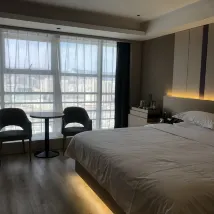 호텔은 지하철역에서 약 50m 거리에 있어 지하철 이용이 매우 편리합니다. 객실은 18층이라 전망이 좋고 아주 조용했습니다. 침구가 편안했고, 에어컨도 시원하게 잘 작동했습니다. 근처에 큰 마트가 있어 필요한 물건을 구매하기 편리했습니다. 객실은 넓고 시설도 잘 갖춰져 있었으며, 침대도 정말 편안했습니다! 장락궁, 마오예, 완다 등 상업 복합단지까지 도보로 이동 가능하며, 주변 생활 편의 시설도 완벽하게 갖춰져 있습니다. 교통편도 정말 좋았습니다! 👍