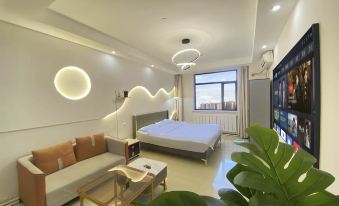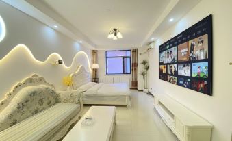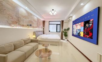 Secluded INS Modern Style HD Large Screen Projection Iqiyi Membership One-Bedroom Double Bed Room