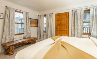 A romantic escape with a “modern ski lodge” atmosphere, Osprey Cottage is part of Cedar Crest Cottages, a historic vacation retreat that has attracted visitors since the 1930s. The recently renovated home sits on the upper level of a two-story cottage, boasting a private covered porch, radiant heat, wood-paneled walls and high ceilings.