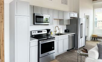 This unit connects to unit 2C by way of metal clad, double doors with deadbolts on each side. Just like joining rooms at a hotel. Guests may combine with 2C for more space. Or, all three units may be rented together to give guests control of the entire 2nd floor with shared access to the 3rd floor and both roof tops.About pets:Pets allowed: dogs and cats less than 50 lbs per pet (limit 3 pets total).Please keep pets on leash and pick up after them..About checkOut:Check out before 11:00 AM.About children:Children allowed: ages 0-17.Please be cautious of stairwells and balconies..About checkIn:Check in after 3:00 PM.About smoking:Smoking is not permitted.About minBookingAge:Minimum age to rent: 18.About events:No events allowed.