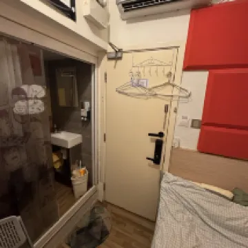 직원 없이 위챗으로 비밀번호 받아서 셀프 체크인했어요. 위생 상태는 괜찮은 편이었고, 방은 작았지만 땅값이 비싼 곳이니 이해할 수 있었어요. 방은 작아도 시설은 꽤 잘 갖춰져 있었는데, 일회용 칫솔이나 치약 같은 건 없어서 미리 챙겨 가야 해요.