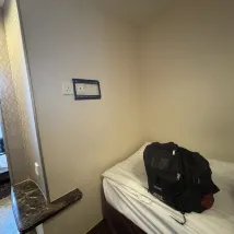 방이 너무좁아요 캐리어 들고가면 펴지도못함 생각보다 지하철역이랑 가깝긴한데 물 비치되있던거 나갈때 돈받을줄은 상상도 못함ㅋㅋ 그냥 그래요 카운터 직원은 친절함