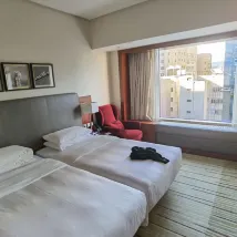 주변의 쉐라톤, 랭햄 등 다른 저렴한 5성급 호텔들과 비교하다가 결국 하얏트를 선택했습니다. 호텔은 빅토리아 항구에서 두 블록 떨어져 있어 그리 가깝지는 않습니다. 아마도 비싸고 고층 객실이어야 바다 전망을 볼 수 있을 것 같네요. 이번에는 단순히 볼일이 있어 온 것이라 숙소에 대한 특별한 요구사항도 없어서, 가성비 좋은 트윈 스탠다드룸으로 예약했습니다.