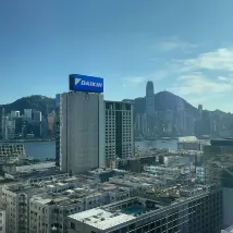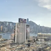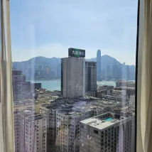 고층 객실 뷰는 정말 좋았고, 빅토리아 하버 전체가 한눈에 들어왔습니다.