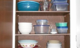 THE KITCHEN:  Just in case 'eating-in' is your preferred option the kitchen is well stocked with dishes, pots and pans, casserole baking dishes, blender, waffle maker, rice cooker, crock pot, toaster and coffee maker.  The fridge is a full sized 18 cubic feet, 4 burner stove with oven and broiler, microwave, and of course a dishwasher.