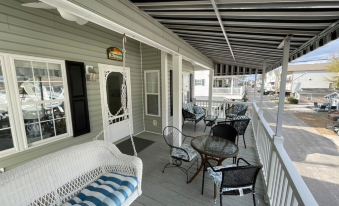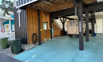 To enhance your stay, you'll also have the pleasure of cruising around in a complimentary limo golf cart, making transportation a breeze. Spend your leisurely afternoons on the covered porch or downstairs, watching TV or engaging in a friendly game of Corn Hole.