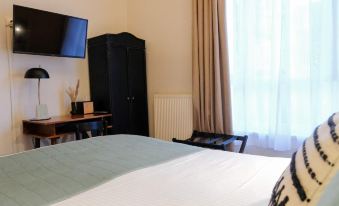 A remarkable hotel, distinguished by the warmth and thoughtfulness of the team, which comes through in everything from helping you arrange your car hire to the detail of the apple-pear compote and home-made cake for breakfast. Because the owner is part of the team, you know you're in good hands from check-in onwards. There are just 12 rooms, and we stayed in 107, which is up steep stairs, big enough for three, and therefore very comfortable for two. Windows facing the road and the courtyard. Good bathroom, with very good straightforward shower. Comfortable bed. Everything to a high standard. No aircon. There are ground floor rooms onto the courtyard. Breakfast is served in the courtyard or the breakfast room, and is a small but well chosen selection, which we greatly enjoyed. Croissants come from the boulangerie next door. The team will do everything to ensure you have a good stay, and we'd stay again.