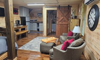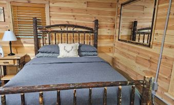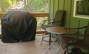 Quaint one room cabin with queen size bed, kitchenette and large bathroom. Comes with linens and bathroom accessories. Microwave, coffee pot with assorted pods, grill with single burner. Enjoy the front porch as you listen to the babbling brook while you grill or sit in the cozy Adirondack chairs around the fire pit. Includes wifi and a large TV. Close to zip lining, white water rafting, hiking and Harrah's casino. For those less adventurous there are lots of cute boutiques and antique stores in the area also. About pets:No pets allowed.About checkOut:Check out before 11:00 AM.About children:Adults only.About checkIn:Check in after 3:00 PM.About smoking:Smoking is not permitted.About minBookingAge:Minimum age to rent: 21.About events:No events allowed.