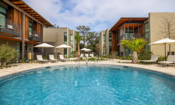 A very unique hotel. Looks like a high end condo complex that decided to be a hotel at the last minute. Very modern, but warm lobby and common rooms. Large rooms, huge bathroom, comfy bed. Very nice and calming to walk the grounds of the hotel. Very nice restaurant on site. Would definitely recommend for couples. I’ve seen someone write about no coffee in the room, but there are a half dozen independent coffee shops within minutes in the Montrose area.