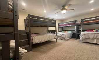 When accounting for all bunkbeds, 1 King ked, and 3 Queen beds the property sleeps 21 and has 4 full bathrooms, yet is still cozy enough for smaller groups.