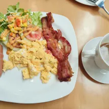 1. 아침 식사 메뉴가 제한적이고, 각 세트의 음식 양이 부족합니다(예: 시리얼 세트마다 요구르트가 더 많아야 합니다). 간단한 뷔페식 아침 식사가 이 문제를 해결할 수 있을 것 같습니다.