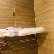 毛巾和浴巾用塑料袋封裝用着更放心,空調下面裝個晾衣服的很人性化。