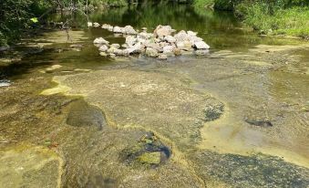 Awesome property with amazing hosts. My wife and I had a great stay at this property. Beautiful scenery, cool creek area to kayak some depending on water levels, wooded trails to walk, friendly goats and chickens (we got to help feed the baby goats which was an unexpected bonus), and overall laid back feel while not being to far from anything.