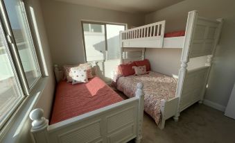 - Bunk room: bunk bed full/twin combo + extra twin bed, shares a bathroom with the guest room, located upstairs