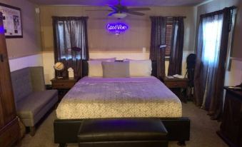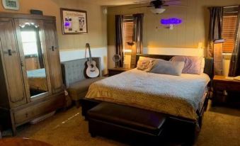 We have a unique and cool secret in town. Our tiny house may help to get your creative juices flowing with a guitar waiting to be played. The music played here is your secret, what you play there stays there. Our tiny home offers a big Bang for your buck! It has high speed internet, a full kitchen, dining area, bathroom and instant hot water!