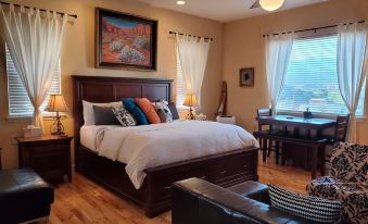 So comfortable and charming. Decorated perfectly. Every amenity is available. The suite is spacious and the bathroom - Wow! The jetted tub felt wonderful after long days of hiking. The kitchen is adorable and has everything you could ever need. We loved our stay!