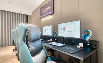 The hotel is located on the third floor of Building 24, Yunding Mansion, Country Garden, Nanxun District, Huzhou City. It is adjacent to Nanxun Ancient Town and Wuyue Square, with a straight-line distance of 2 kilometers and convenient transportation in the surrounding area.There are a variety of e-sports room types, including e-sports special king room, e-sports king room, e-sports deluxe king room, e-sports twin room, e-sports deluxe twin room, e-sports three person room, e-sports four person room, and team five person room; Display 27 inch AOC 2K320Hz, ROG2K240Hz; CPUi7-14700K, Graphics card 5070, 5070ti, 32GB memory, gigabit network, Netfish high-end gaming chair, Bloodhand wireless mouse, full field mechanical arm and other professional gaming configurations, providing member rental peripheral services.【 Convenient Transportation · High speed Railway Station 】 It is 3.8 kilometers away from Nanxun Station and takes about 10 minutes by car; 40 kilometers away from Huzhou Station, within a 50 minute drive.[Entertainment and shopping] Next to the hotel is Wuyue Square, Jiadu Square, and Zhebei Building Shopping Center, which is 5-10 minutes away.[Food and Beverage] Yunding Restaurant, Zhigang Food Street, Anhui Cuisine Cuisine Garden.Surrounding hospitals: covering all levels of Grade A hospitals within 3 kilometers; 2.2 kilometers away from Nanxun District People's Hospital.Within a 5-kilometer radius, multiple scenic spots are covered, including Nanxun Ancient Town, Shuijingjing Park, and Jili Lake Silk Museum.Full floor coverage of gigabit WIFI network.【 Hotel Services 】 The hotel provides self-service laundry rooms, robot food delivery, luggage storage and other services. "