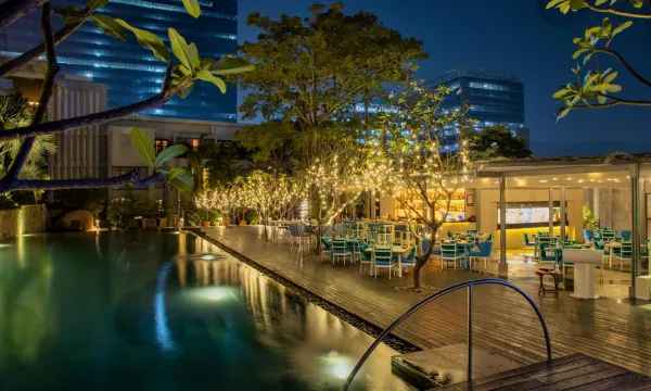 시설 내에 위치한 레스토랑 Collage에서 세계 요리를 즐겨보세요. 여기에는 다양한 음료가 제공되는 바/라운지 및 탁 트인 정원 전망까지 갖춰져 있으며 날씨가 괜찮은 날에는 야외 좌석이 마련되죠. 또는 편하게 객실에서 24시간 룸서비스를 이용하실 수 있습니다. 아침 식사(뷔페)를 매일 06:30 ~ 10:30에 유료로 이용하실 수 있습니다.
