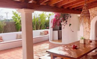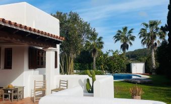 The property was even better than the photos. The pool was huge although the larger one is very deep with no shallow section. The gardens and terraces were superb with plenty of room for everyone. The kitchen was small but well-equipped with appliances and plenty of crockery and cutlery. There was a useful room for ironing which also had a bit of gym equipment as well as a laundry room. The principal bedroom was very large and had its own terrace and en-suite bathroom (the terracotta one!) and there are 3 more bedrooms and a bathroom with another bathroom downstairs. The location is a flat 15 min walk to Santa Gertrudis which has some lovely bars and restaurants. We didn't actually visit any beaches as the garden and pool area was so lovely. I'd highly recommend a stay here and Sophia, the host, was extremely welcoming and helpful.