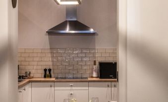 Sehr ruhige und entspannte Wohnung zum Entspannen. Sauna, Whirlpool Badewanne und die Dusche sind ein absoluter Traum. Die Küche enthält alles was man braucht.