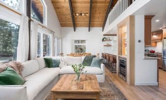 Experience comfort in our renovated 4BR, 3.5BA home with extra sleeping areas. Enjoy Diamond Peak views from two bedroom decks and a 7-person hot tub. Modern amenities include a fully equipped kitchen, 4 WFH desks, high-speed internet, Weber grill, wine fridge, fireplace, Peloton, and 3 OLED TVs.