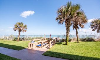 This unit sleeps 4 in beds. The maximum occupancy for this unit is 6 as we can provide and air mattress. Located in beautiful Indian Harbour Beach, Florida in central Brevard County, we offer guests a relaxing stay. All our units directly face the ocean and provide a beautiful ocean view! Each unit is a beautifully decorated 2 Bedroom/2 Bath condominium. This 1350 sf condo is in the Indian Harbour Beach Club. This vacation rental complex is one of the best short-term rentals on the beach. This beach front complex is a hidden gem that most people do not know about. Those who do know about it, usually reserve their rooms a year in advance. The covered parking spot is 20 yards from the front door so easy loading and unloading. The back door is 30 yards to the sand, which is awesome when you want to quickly run in from the beach to grab something. On the inside, the master bath and guest bath are fully stocked with the necessities. All linens and towels are provided. Now, into the living room and the bedrooms. The master bedroom has a king size bed. The guest room has two single beds, and the TV Content in each room is supplied by Spectrum and complimentary movie channels are provided. The kitchen is fully stocked with everything you would expect. Refrigerator, dishwasher, microwave, stove, coffee pot, blender, toaster oven etc. The laundry room has a large capacity washer and dryer. There is also a heated swimming pool, shuffleboard courts, outdoor gas grills, and a car wash area. Beach towels, beach chairs (2) and an umbrella are provided.About pets:No pets allowed.About checkOut:Check out before 10:00 AM.About children:Children allowed: ages 0-17.About checkIn:Check in after 3:00 PM.About smoking:Smoking is not permitted.About minBookingAge:Minimum age to rent: 25.About events:No events allowed.