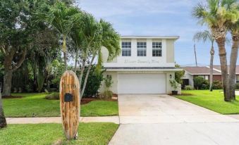 Get away from it all and indulge in that long-awaited beach vacation! Sip on a mimosa and watch your kids swim in your personal tropical paradise! This home offers an ample amount of space including 2 Masters w/ensuite baths (King+Queen) an additional Queen, Bunk Room (full over full), Sofa Bed, Trifold Mattress, and 2 Pack 'n Plays! Two family rooms with smart TV's, smart TV's in every bedroom that has Spectrum TV/WIFi. HBO and many other channels included! Our Backyard indludes a 10x50' lap pool, complete outdoor living area, lounge chairs, charcoal BBQ, 36" Blackstone cooking station, and so much more! We have 6 bike cruisers, Beach chairs, wagon, paddle boards, and cooler bag for a perfect day at the beach or Gleason Park (1 Block)! Outstanding restaurants, shops and bars are a very short distance, several are within walking distance! Local attractions include Cocoa Beach Dolphin tours, Space X shuttle launches, Kayaking, fishing tours, snorkeling, and so many other options!!About pets:Pets allowed: dogs less than 20 lbs per pet (limit one pet total).One small, non shedding dog that is house trained..About checkOut:Check out before 11:00 AM.About children:Children allowed: ages 0-17.About customRules:Quiet hours begin at 10 pm. We have great neighbors please be respectful to them..Absolutely no parking on the street. It’s against city code.,Absolutely no smoking or vaping in our home. Their is a $500 fee if this rule is broken..About checkIn:Check in after 4:00 PM.About smoking:Smoking is not permitted.About minBookingAge:Minimum age to rent: 25.About events:No events allowed.