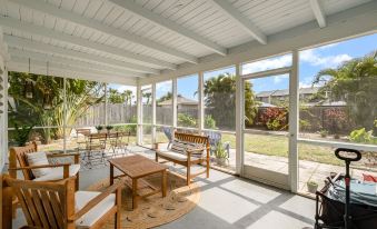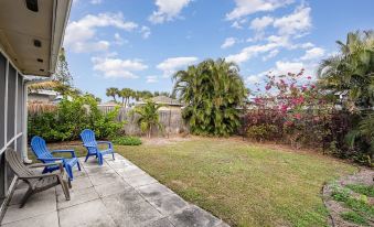 Just a few minute walk to the beach, this meticulously clean beachside bungalow will wow you with all the beautiful details. Lovely screened in porch, landscaped yard, fully equipped kitchen, plenty of linens, wifi and more! Tropical Paradise is just an hour drive from Orlando airport, theme parks, Kennedy Space Center and minutes away from shopping dining nightlife. Sit right outside the house and watch launches from Kennedy Space Center! This two bedroom bungalow has a queen bed in one room and a trundle bed with 2 twins in the other and will easily accommodate 4. A fully equipped kitchen means meal time is easy, should you want to cook. Several grocery and specialty food stores are within a couple miles as well as lots of wonderful restaurants. Public beach access is a 5-7 minute walk and beach gear is provided as well a wagon to wheel it over.About pets:No pets allowed.About checkOut:Check out before 10:00 AM.About children:Children allowed: ages 0-17.About checkIn:Check in after 4:00 PM.About smoking:Smoking is not permitted.About minBookingAge:Minimum age to rent: 22.About events:No events allowed.