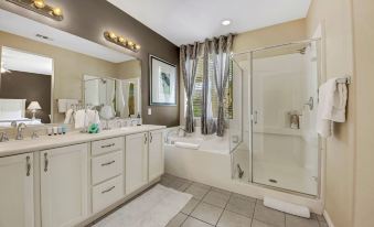 ▹ Bedroom 1: Cal king, 55” Smart TV, large en-suite bathroom, baby crib