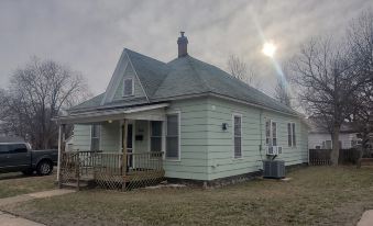 This 1860 home is conveniently located one block from highway 54 and several local eateries. It is 2 blocks from Riverside Park and one block from the Southwind Rail Trail. The west end of the new LeHigh State Park is less than a mile south. Enjoy coffee on the front porch or back brick patio surrounded by mature trees and a picket fence. In the comfortable living room, watch tv on the Roku smart tv. Two bedrooms with crisp, white linens on queen beds & black out curtains. The sunroom has a daybed with pull out trundle. Includes a washer/dryer, driveway, and fully equipped kitchen. New central heat and air. The wall heaters in the photos are not in use. Child friendly with highchair, pack 'n play, toys, and books.About pets:No pets allowed.About checkOut:Check out before 11:00 AM.About children:Children allowed: ages 0-17.About checkIn:Check in after 3:00 PM.About smoking:Smoking is not permitted.About minBookingAge:Minimum age to rent: 21.About events:Events allowed: family gatherings and birthday parties.Maximum event attendees: 12.