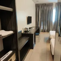 호텔은 많은 식당과 일부 관광 명소에서 도보 거리에 있습니다. 하지만 특히 늦은 밤에는 차량 통행으로 인해 방음이 취약합니다. 방에 옷장이 없습니다.