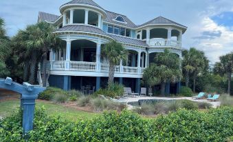 Completed in 2005, this exquisite oceanfront masterpiece features five bedrooms and five bathrooms. Both spacious and elegant, it is 5000 square feet of pure luxury with an additional 3500 square feet of porches with gorgeous ocean views. The pool is a serene saltwater pool that both adults and children will love! Richly furnished, it sleeps 12 very comfortably. This romantic home is one of the most unique beauties on the island. We have 24 hour Concierge Service and can arrange for a Babysitter. Relax in the quiet beauty of Isle of Palms, while being a mere 20 minutes from historic Downtown Charleston. The house is located right next to the new wheelchair access boardwalk and the house comes with an all terrain beach wheel chair. World class golf courses and fabulous shopping are located within minutes of this fabulous home. IOP is one of South Carolina's barrier islands. It is long and narrow and bounded by the Atlantic Ocean and the Intracoastal Waterway. The island's beautiful beach and the inland waterway offer a wide diversity of animal and plant life while providing endless recreational possibilities. In 2002, the City's beach was the first in SC to achieve the Blue Wave Designation from the Clean Beaches Council. Blue Wave is an environmental standard that indicates our beach is well managed and a clean family beach.