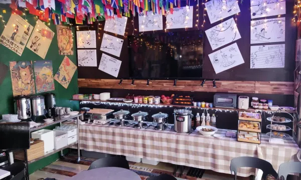 房間寬敞明亮,淡季入住升等四人房,隔音稍差,有附自助式早餐,菜色豐盛美味,服務人員態度良好,能說中文。