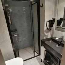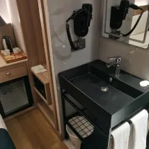 깨끗하고 현대적인 스타일의 객실, 디자인과 욕실이 매우 마음에 듭니다 💯, 제한된 공간, 다양한 휴식 시간, 객실 내 무료 과일, 일일 하우스키핑, 2명만 수용할 수 있는 작은 엘리베이터, 근처 레스토랑에서 꽤 멀리 떨어져 있음, 완벽함 세면도구 🧴