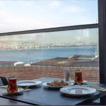 그 외의 모든 것이 있었습니다. 터키 전통 요리로 구성된 최소한의 유럽식 아침 식사, 레스토랑에서 주변 지붕과 멀리 보이는 바다가 보이는 "탁월한" 전망.