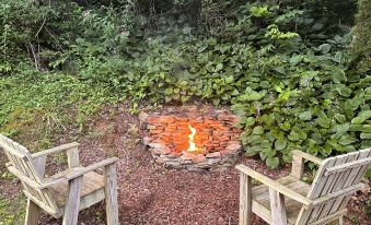 During cooler evenings, you can burn manufactured firelogs in the fireplace or if you enjoy burning real wood, there is a firepit built into the mountian - perfect for roasting marshmallows.