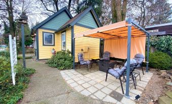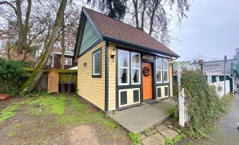 Welcome to our charming tiny house experience in downtown Historic Jacksonville! This cozy studio is thoughtfully designed to offer comfort and flexibility. Featuring air conditioning, a washer/dryer, and WiFi, it's equipped with everything you need for a relaxing stay. The fully functional kitchen allows you to cook your favorite meals, while the studio layout with a Murphy bed, sofa bed, and extendable table provides extra space for guests or play.