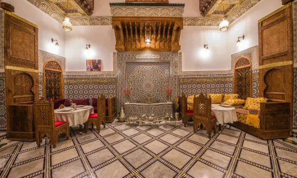 리야드 올리아의 경우 페스 중심에 있으며 걸어서 3분 거리에는 플라스 르시프, 8분 거리에는 자우이아 시디 아메드 티자니 등이 있습니다. 이 리야드에서 블루 게이트까지는 2.6km 떨어져 있으며, 2.6km 거리에는 바브 프투우도 있습니다.