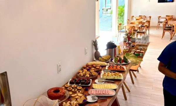 Alguns pontos a melhorar como: climatizar o local do café da manhã que é muito quente, ou pelo menos colocar ventiladores. Aumentar a variedade do café. Sentimos falta de mesinha e cadeiras nos quartos(locamos 5 apartamentos), solicitamos e fomos atendidos em um dos quartos disponibilizaram mesa e cadeiras na varanda. Sentimos falta de maior segurança na entrada dos hóspedes, pois não solicitaram documentos pessoais e as chaves dos veículos ficaram em cima do balcão da recepção para os manobristas utilizarem quando necessário, mas poderia ser facilmente roubada. Deveriam colocar pulseiras de identificação nos hóspedes também, pois ajuda na segurança.