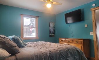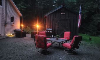 The cottage is equipped with pretty much everything you would need for cooking and the beds are all ready for a good night sleep with black out blinds. On the cold night there is a cozy wood stove to keep you warm or on the hot nights enjoy air-conditioning in the bedrooms. There is a loft with 2 cot mattresses and a couple air mattresses that kids really enjoy. The bedroom with 2 twins can also be made into a king bed if that fits your needs better