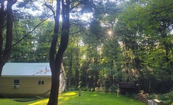 Enjoy this secluded cottage on a dead end seasonal road in the woods. In the evening enjoy a campfire or gather around the patio and enjoy each other's company.We have a grill with all cooking utensils and a picnic table. It is only a 5 to 10 min walk to a small beach area for swimming fishing or boating. There is a paddle boat,row boat, canoe and 2 kayaks for you to enjoy. There is also a small play ground, basketball court and baseball/kickball field. Feel free to bring your recreational vehicles to get around the small community or enjoy a nice walk. We are located near many places to check out, darien lake and letchworth state park are both 30 min away. Niagara falls is 1 hour away. Ellicottville skiing resort is 45 min. Arcade &Attica train is 10 min. There are also many golf courses in the area.