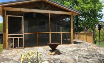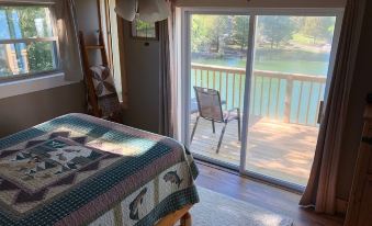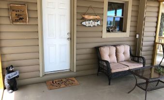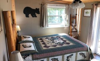 Our cabin consists of 2 bedrooms and 1 bathroom. Living room has fireplace and the kitchen is well equipped with all the necessary items. Large outdoor patio area with screen porch. The patio area is equipped with table and chairs that overlooks the lake and is partially covered for when you want a little shade or if it's raining. There is also a fire pit on the patio which is great for making smores after a long day exploring Douglas Lake. There is a charcoal grill, for your use. Master bedroom has access to a large deck overlooking Douglas lake. There is a boat ramp on-site for those who wish to bring their own boat. There is also a private dock.