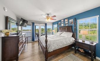 The home has 1 king and 1 queen bedrooms on the main level with en suite baths and 1 king bedroom lower level with en suite bath. All bedrooms open onto the large decks and patios and offer fantastic views of the lake and sunsets. Large kitchen/dining /den combo opens to the massive screened deck overlooking Douglas Lake as well as both bedrooms having direct access to the screened-in deck. Home is comfortable for up to 3 couples with 2 children as there is plenty of room on the property to get away if needed.