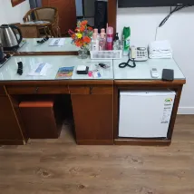 사장님이 공항까지 데려다줬다는 댓글을 봤는데, 이 댓글 보고 꽤 놀랐어요. 사장님이 정말 친절하신 것 같아요. 방도 깨끗하고 벌레도 없고 모기도 없었어요. 물은 매일 배달해 주셨어요 (어느 날은 배달이 안 되었지만, 제가 요청했더니 다음 날도 계속 배달해 주셨어요). 사장님은 정말 친절하세요. 사장님은 좀 진지하신 편이긴 하지만, 떠날 때 손을 흔들어 작별 인사를 해 주셨어요. 이 호텔을 강력 추천합니다. 충전기까지 주셨어요! 가격은 비싼 편은 아니지만 슬리퍼는 꼭 챙겨가세요 ㅎㅎㅎ. 욕실 슬리퍼는 좀 낡았어요. 욕실은 깨끗하고 칫솔을 제외한 모든 게 다 있어요. 호텔 바로 옆에 카페가 있는데, 정말 맛있어요! 크림이 정말 신선하고 달콤해요!