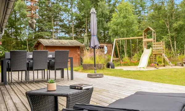 Single-family house, built in 1984. 400 m from the sea. Private: natural state property 3'384 m2. Barbecue, children's playground (slide, swing). In the house: washing machine. Parking at the house. Carport. Grocery 800 m. The owner does not accept any youth groups. "Aleida" - 400m from the sea", 3-room house 80 m2. Object suitable for 6 adults + 1 child. Living room with TV. 1 room with 1 double bed. 1 room with 2 beds. 1 room with 1 double sofabed. Kitchen (oven, dishwasher, 4 induction hot plates, microwave, freezer). Shower/WC. Facilities: children's high chair, baby cot. Internet (WiFi). Please note: non-smokers only. Bookings accepted for holiday purposes only. 813