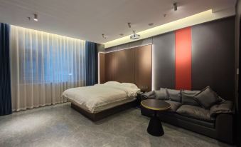 酒店房間設計很温馨,高級感 空間很大,通風好,夏季時出來遊玩買點飲料,酸奶有冰箱真的很方便。洗衣機全新的很好,布草乾淨整潔,床墊的舒適度適中。停車也很方便。老闆人很友好。